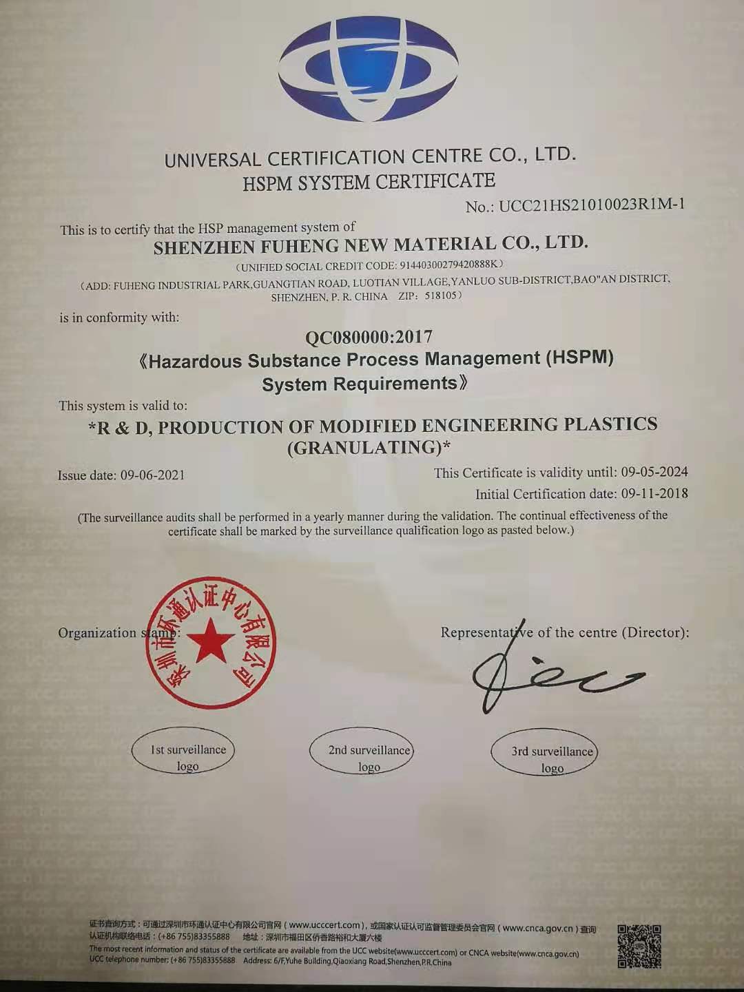 Certificate of hazardous substance management system