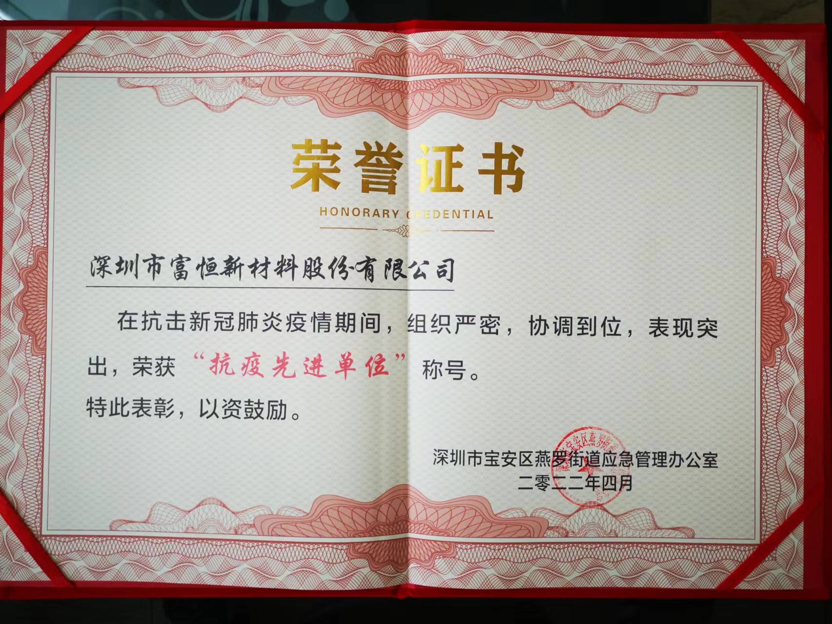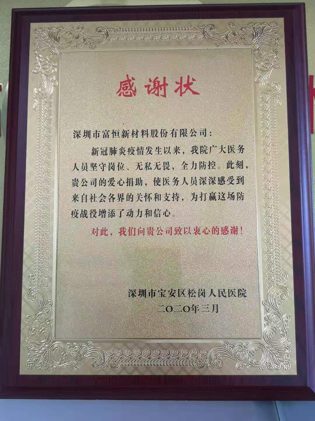 2020 anti-epidemic certificate of appreciation