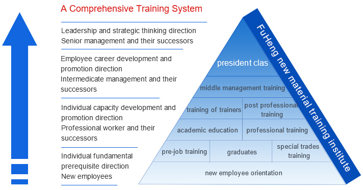 “Fresh graduate training” is a feature of Fuheng New Material’s training system. Every year, Fuheng recruits a large number of excellent fresh graduates from colleges and then mainly allocates them at the posts of R&D, sales, process, color match, production control and administrative management, etc. as the key training object for Fuheng’s reserve talents echelon construction. After the fresh graduates check in, the Human Resources Department will arrange theoretic study (including corporate culture, system procedure, safety knowledge, production process, 6S management, products information and elite face-to-face), quality-extended training, workshop internship for 2 months and work with assistance of senior staff after starting work at respective department.